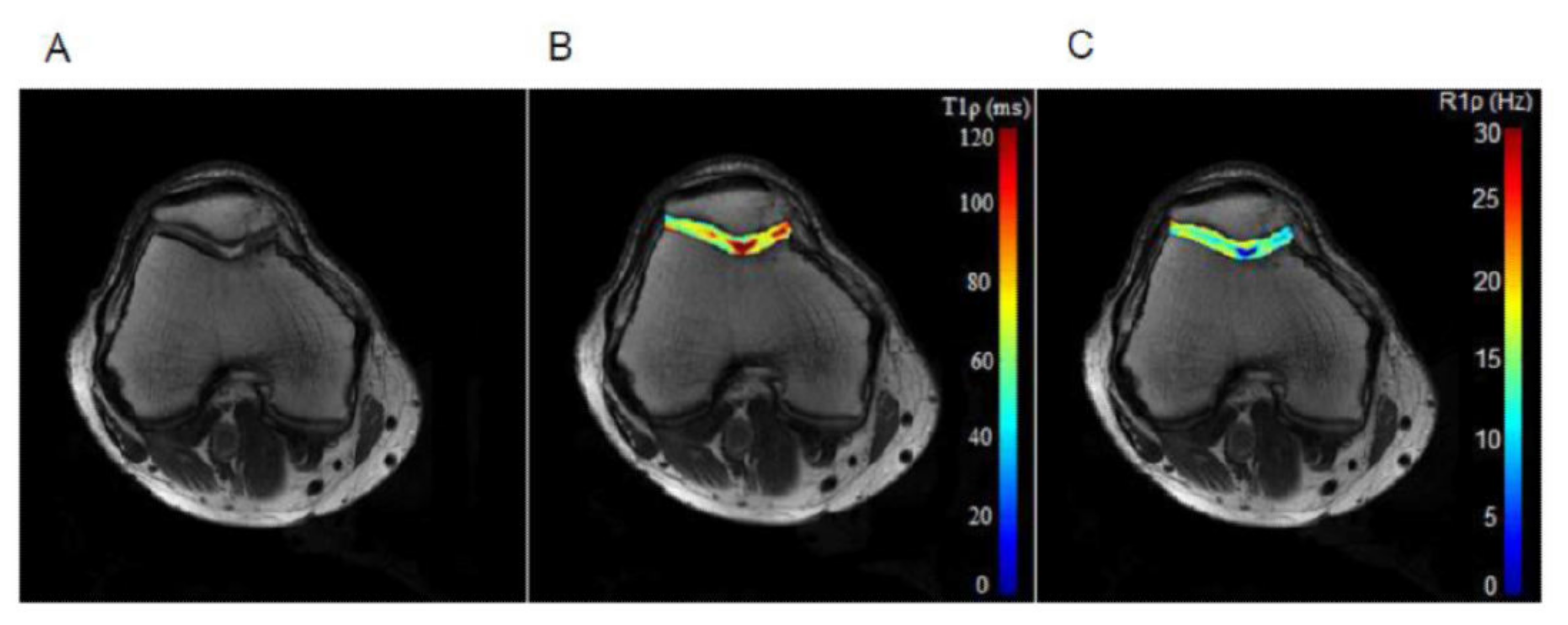 Li, X. et al., 2007. In vivo T(1rho) and T(2) mapping of articular cartilage in osteoarthritis of the knee using 3 T MRI. Osteoarthritis Cartilage, 15(7), pp.789โ797.